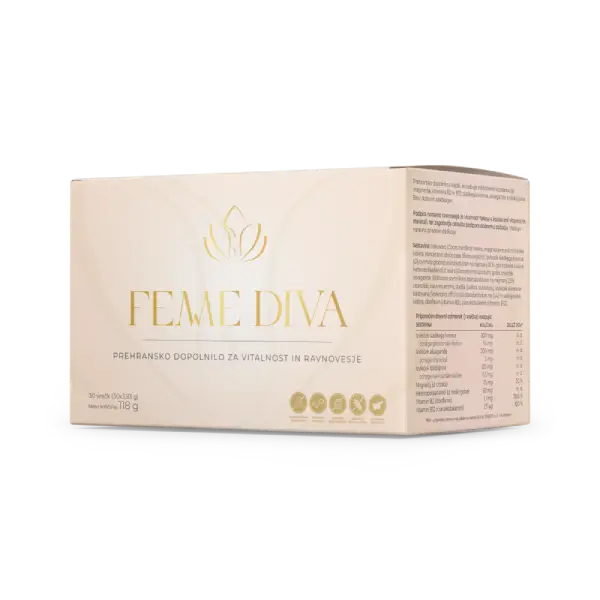FemmeDiva je prehransko dopolnilo, zasnovano posebej za ženske, ki iščejo podporo pri hormonskem ravnovesju in splošnem dobrem počutju.